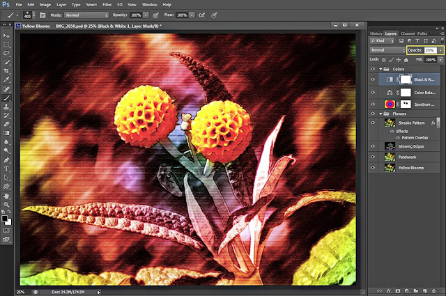 lower Opacity of Black and White Adjustment Layer to 25% and with